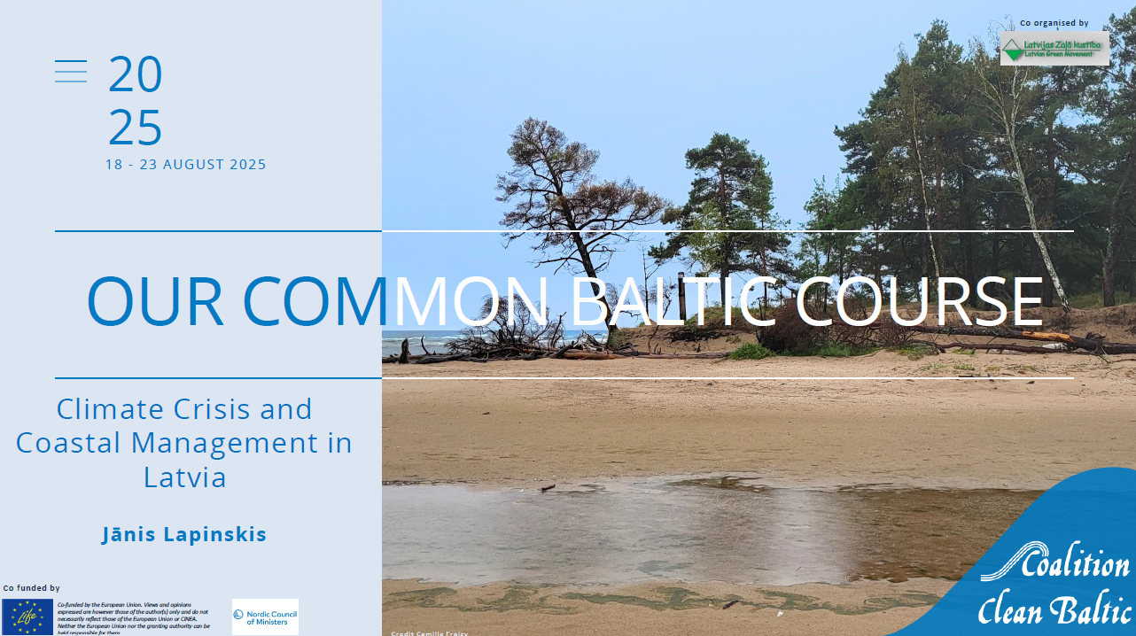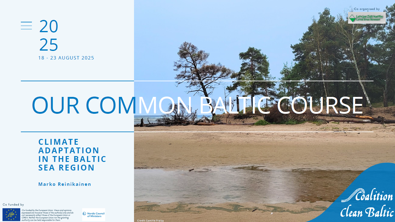 The Our Common Baltic 2025 course is dedicated to Climate Change in the context of the Baltic Sea and its coastal ecosystems. Participants will explore how climate change is affecting the coast of Latvia, what measures can be taken to mitigate its impact, and how individuals can contribute to solutions.