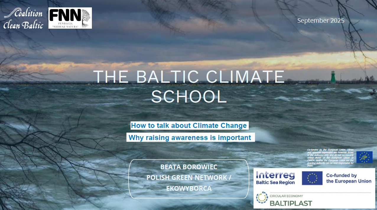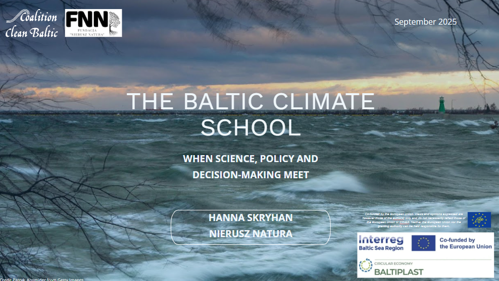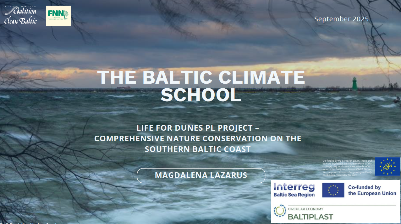 The second edition of the Baltic Climate School will take place in Gdańsk, Poland, from 16 to 20 September 2025. The course will focus on the consequences of climate change on the Baltic coast. The co-organiser of this edition is "Nierusz Natura" Foundation.